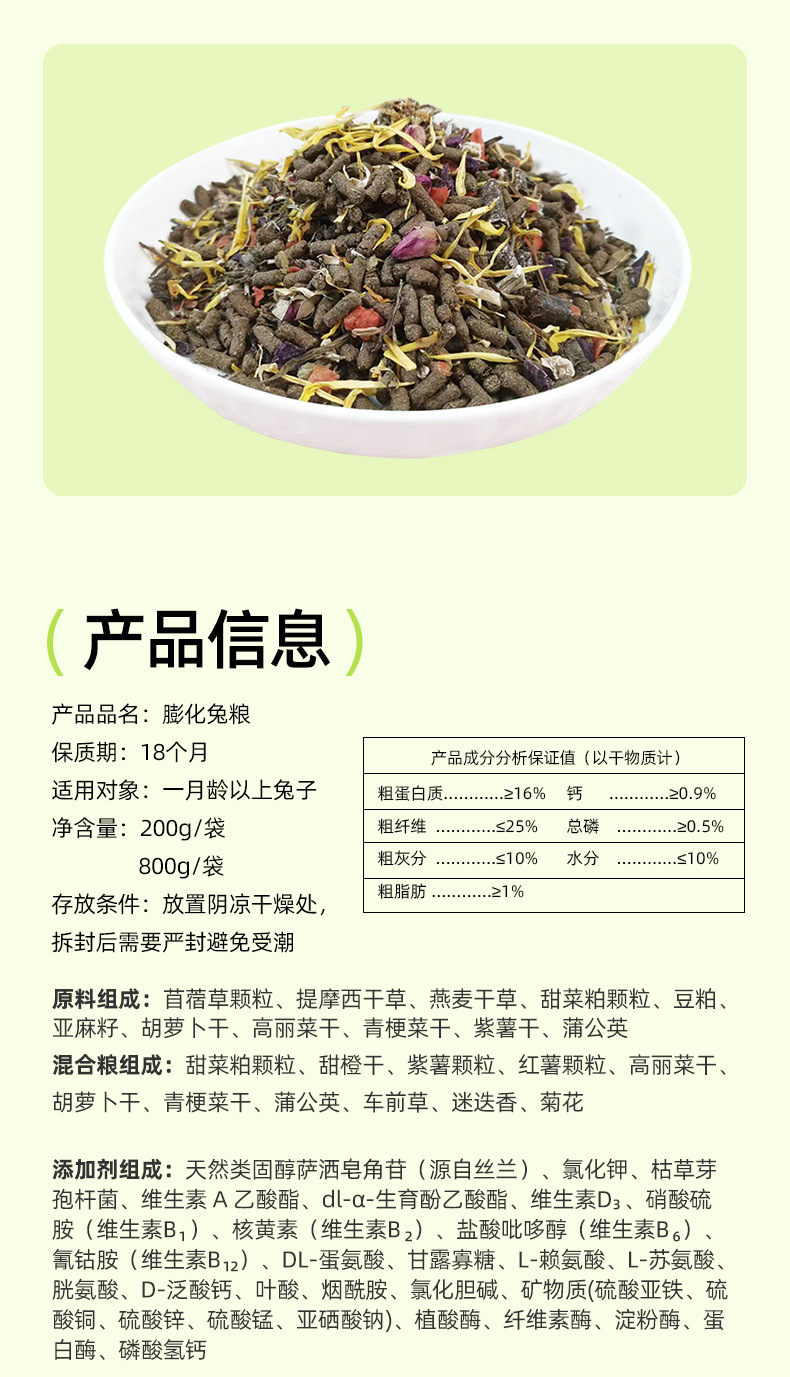 兔粮800g宠物兔子粮食垂耳兔饲料高纤维膨化粮幼兔成兔食物小兔子